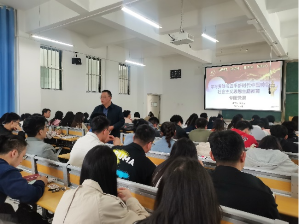 2023年5月11日下午,理学院党委在抒望楼105教室开展了学习贯彻习近平新时代中国特色社会主义思想主题教育专题党课,由理学院党委副书记杨合立主讲,辅导员赵倩倩、安星、翟亚男出席,理学院全体学生党员参会。