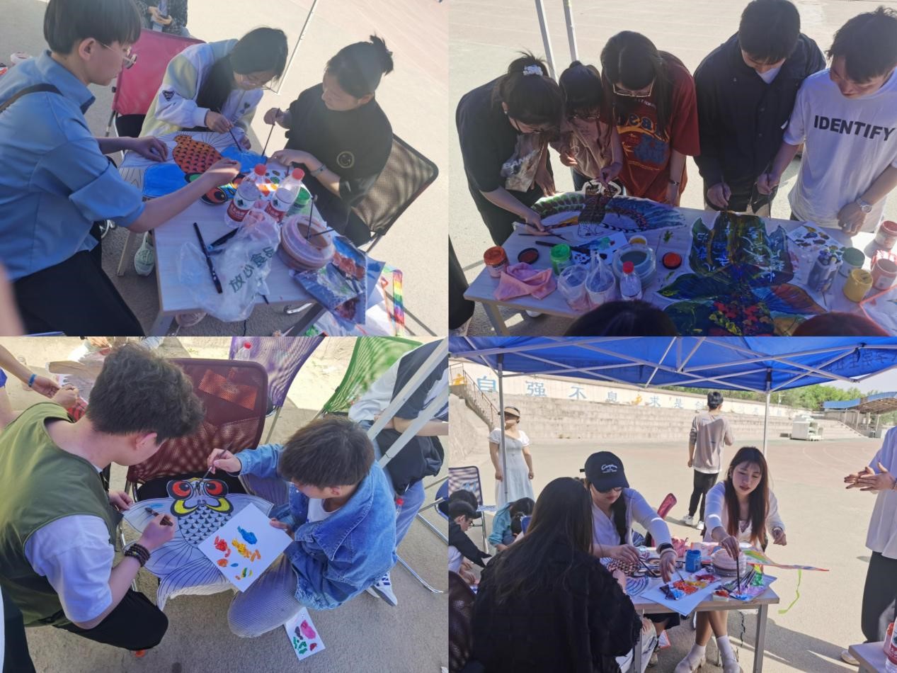 活动开始,同学们齐聚一堂,感受风筝这一中国传统文化的独特魅力。风筝DIY的教学及欣赏作为第一个活动环节,参与者们亲自动手制作风筝,学习风筝的基本结构和装饰技巧,体验制作风筝的乐趣。各式各样的风筝展示出了参与者的创意和技巧。五彩斑斓的纸风筝、巧夺天工的立体风筝,令人赞叹不已。完成制作后,参与者们纷纷拿起原创的风筝,放飞在蓝天白云之间,享受风筝飞翔的自由与畅快,也通过这样的方式,增进对传统文化的理解与认同。