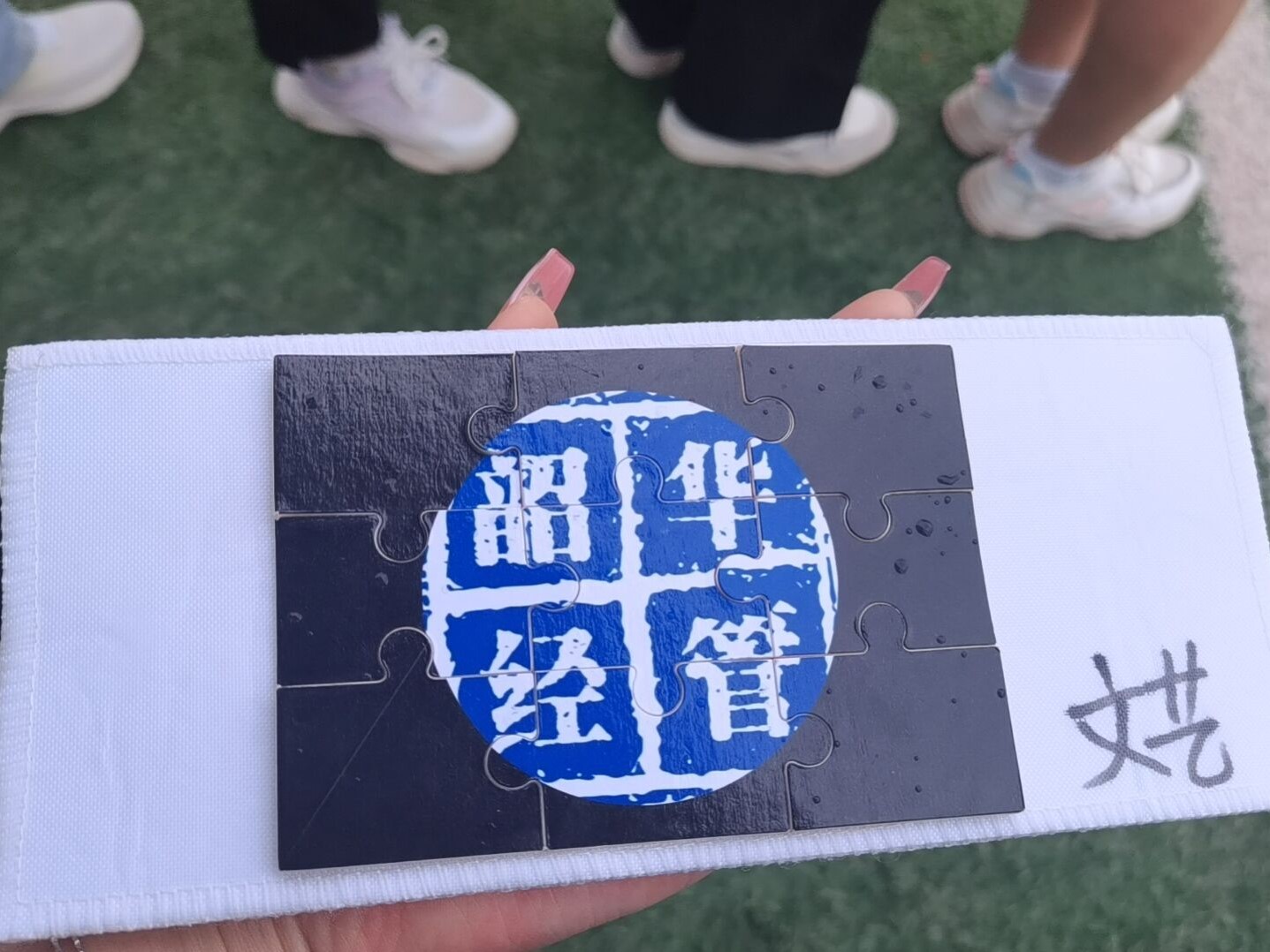 下午三点,撕名牌活动正式开始。活动主线任务为撕掉对手身上的名牌,直至最后一个人存留在场地内;参赛成员们身轻矫健地在活动场地各个角落穿梭,猎人的设置更为游戏增添了紧张激烈的氛围。此外,主办方还设置了支线任务向成员们提供游戏加成从而更容易获得最终胜利;五子棋赛点各部门成员摩拳擦掌,深思熟虑之后才下出一步棋;“你画我猜”处笑声频频,大家默契配合,猜出答案,赢得线索;“瞎子背瘸子”游戏大家更是卯足了劲,争分夺秒。经历两次缩圈后比赛进入了白热化阶段,剩余的全体成员被聚集在了田径场,大家你追我赶在欢声笑语中结束了游戏。最后文艺部的队员略胜一筹,摘得桂冠。