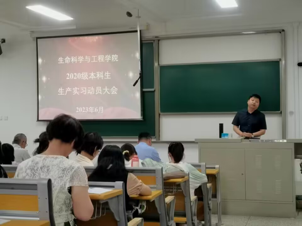 6月19日上午,生命科学与工程学院召开2020级本科生生产实习动员大会。学院班子成员和各专业负责人王雅、孙伯禄和冷非凡,以及全体2020级学生参加。动员会上,学院副院长任海伟教授首先详细介绍了生产实习活动的目的和具体任务,并要求大家严格遵守企业规章制度,将所学理论知识和生产实践紧密结合,勤思考,勤动手、勤学习、勤请教,在生产实践中充实完善知识体系。紧接着,冯佩瑶、张卓越和孙文杰等学生代表进行了慷慨激昂的表态发言。他们表示要在实习岗位中积极主动地锻炼自己,努力做好从学生到工厂职员的角色转换,虚心向实习单位专家学习,为学校增光添彩。