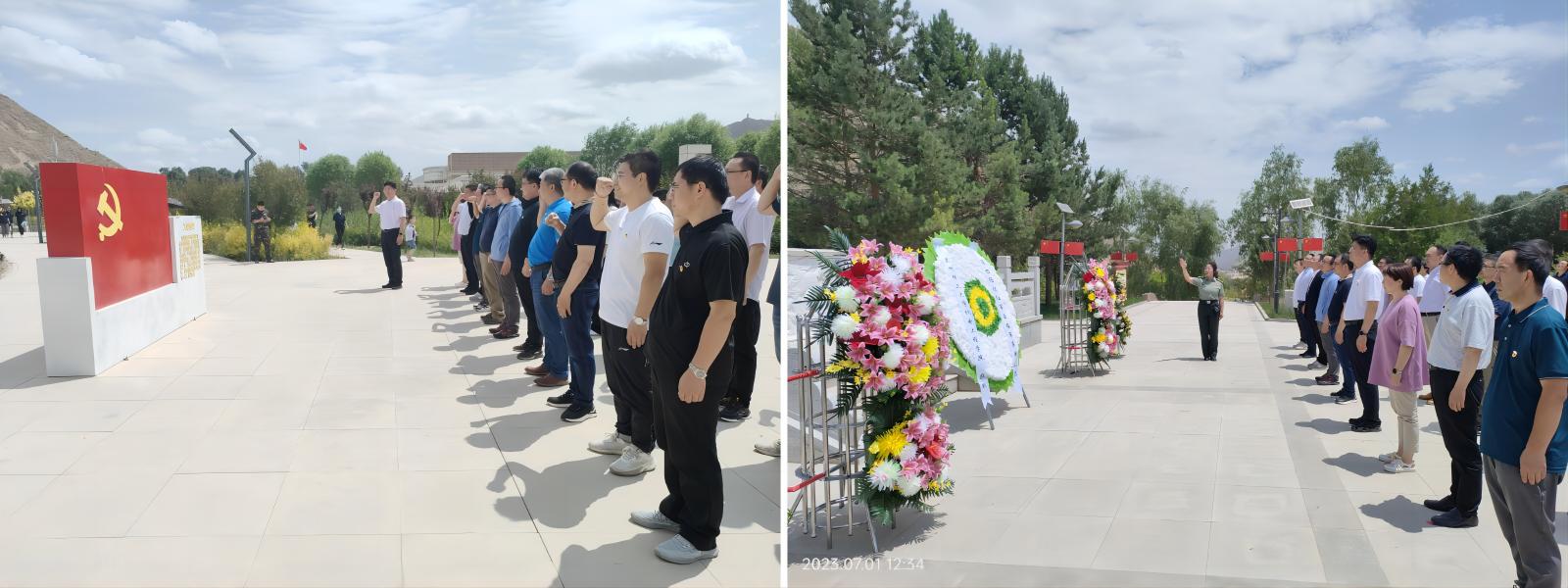在红军西路军烈士陵园,全体党员列队肃立,瞻仰西路军烈士纪念碑,向长眠于此的革命烈士敬献花圈,默哀致敬,缅怀先辈丰功伟绩。“我志愿加入中国共产党………”在缅怀广场,大家面向党旗,高举右拳,重温了入党誓词。