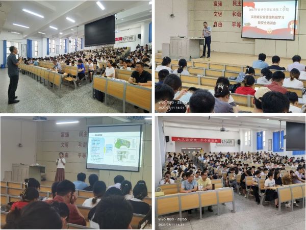 2023年7月11日下午,石油化工学院在彭家坪校区集贤楼108举行实验室安全管理新规学习暨安全培训会,会议围绕学习落实教育部办公厅《高等学校实验室安全规范》开展安全教育培训。学校实验室管理处副处长刘洪军,石化学院党委书记任鹏、副院长赵霞,学院实验中心全体教师、新入职青年教师以及在校博士生、硕士生共500余人参加。