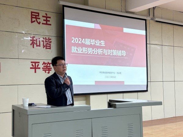 杨金明作题为《2024届毕业生就业形势分析与对策辅导》报告,从就业环境、岗位需求变化、供需结构矛盾等方面分析了疫情常态化下的就业形势,引导毕业生把握趋势,顺应变革,科学规划、准确定位,选择适合自己的招聘单位,鼓励毕业生积极转变就业观念,抢抓机遇、充分准备,积极就业、尽早就业、高质量就业。张飞龙结合学院近年来就业情况实际对同学们进行了动员和指导。(撰稿:陈伯友;终审:任鹏)