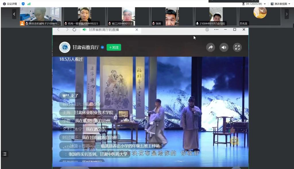 10月14日晚上,玉川党支部组织全体党员在甘肃省教育厅微信公众号共同观看红色话剧《血色高台》,接受红色教育洗礼,补足精神之钙。