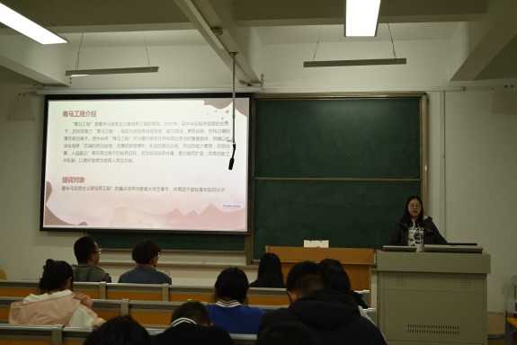 为深入学习贯彻党的二十大精神,认真开展“青年马克思主义者培养工程”,用党的先进理论武装、指引青年学子,理学院第九期青马工程培训班于2023年11月3日晚8点于彭家坪校区抒望楼106教室开班,翟亚男老师为本期培训班讲授第一讲,第九期青马工程培训学员共100余人参加。