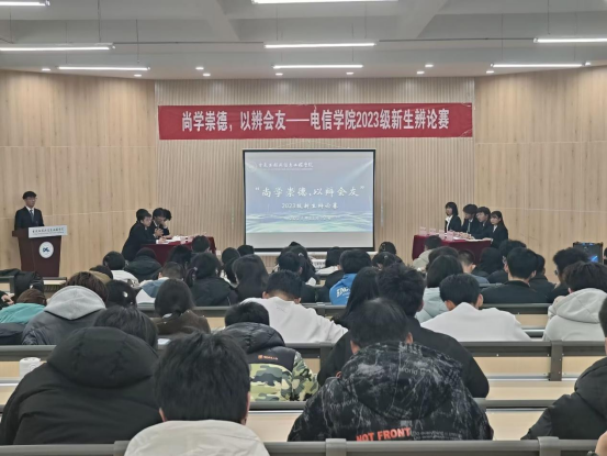 11月30日,电信学院在舒卷楼D401举办“尚学崇德,以辩会友”2023级新生辩论赛。学院团学负责老师、校辩论协会成员、文学院和电信学院辩论队学生骨干及2023级新生同学共150余人参加本次活动。