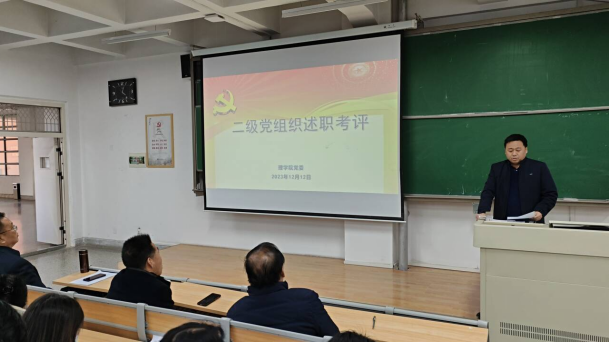 为总结学院党委一年来的工作成绩,激发领导干部担当作为、廉洁自律的工作作风,按照学校《关于2023年度二级党组织工作考核的通知》和《关于2023年度中层干部考核有关事项的通知》的安排,12月12日下午,理学院在观成楼204教室召开2023年度二级党组织述职考评暨中层干部考核会议,会议由学院党委书记张维权主持,学院全体教职工参加会议。