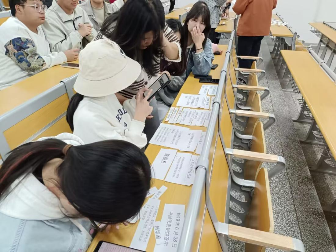 本次活动以团队竞赛形式进行,八人一组,选取五四运动中的历史事件为拼图内容,通过拼接五四运动期间发生的重大事件的卡片来回顾百余年前的光辉历程。小组成员需要根据五四运动一系列事件正确时间线将“五四运动”事件照片排序。当主持人下达口令后,小组成员迅速进入头脑风暴,大家集思广益,分工协作。同学们一起穿越时空,透过历史图片,回顾那些激昂的时刻,感受五四精神的深刻内涵。这不仅是一场知识的竞赛,更是一次心灵的洗礼,让我们在思考中传承,在比赛中成长!