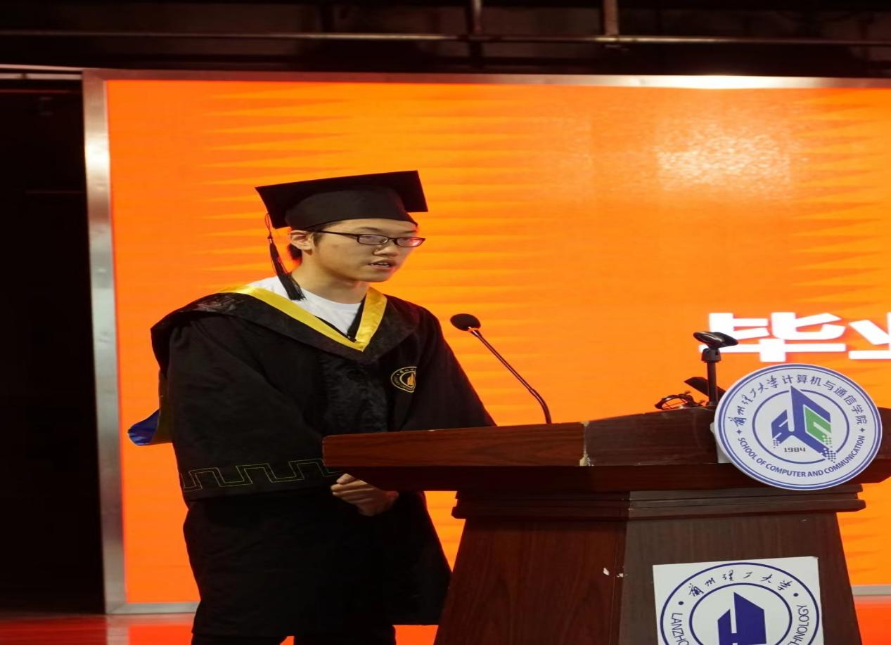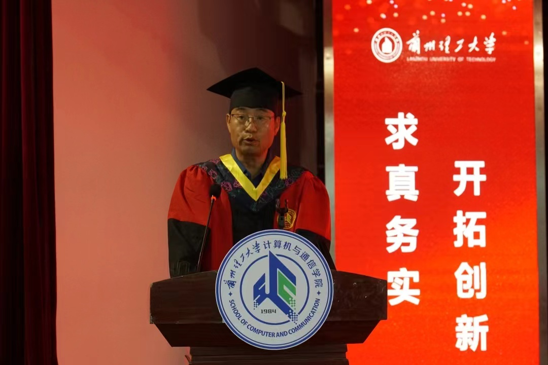 毕业典礼在庄严的国歌声中正式开始,计通学院院长冯涛教授致辞,他希望同学们都要始终把献身民族复兴作为人生最高志向,都既要心中有梦、脚踏实地,又要坚定信念、追求卓越,在“奋进求是”校训的指引下,努力成为一名学有所长、业有所专、技有所精的栋梁之才,做出一番无愧于自己、无愧于时代的事业。