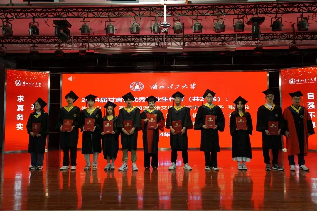 在学位授予仪式环节,院长冯涛教授宣读了学校关于授予学位的文件,高国礼书记向2024届甘肃省三好学生颁发荣誉证书,年福忠副院长向2024届甘肃省优秀毕业生代表颁发荣誉证书,李晓旭副院长向学院百分百就业宿舍颁发证书,张玺君副院长向2024届毕业生校友联络员颁发聘书。