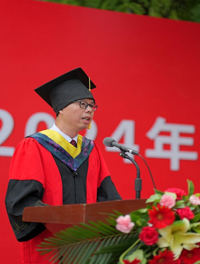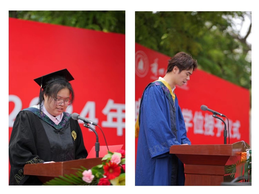 本科毕业生代表许湘和硕士毕业生代表刘鹏权分别上台发言,分享难忘的求学记忆,深情回顾在校的点点滴滴,表达对母校的感激之情和对未来的憧憬,祝愿同窗们万事顺遂,此去前程似锦,再见依旧如故。