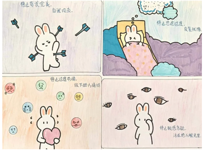 此次比赛面向学校全体学生,每一份参赛作品均彰显出参赛选手别具一格的绘画风格。从充满幽默、可爱元素的漫画,到极具想象力、天马行空般的抽象画,同学们充分施展自身的想象力与创造力,将思想性与艺术表现力完美融合,绘制出一幅幅各具特色的优秀作品。他们以画作作为交流的媒介,开启了一场与心灵对话的奇妙之旅。