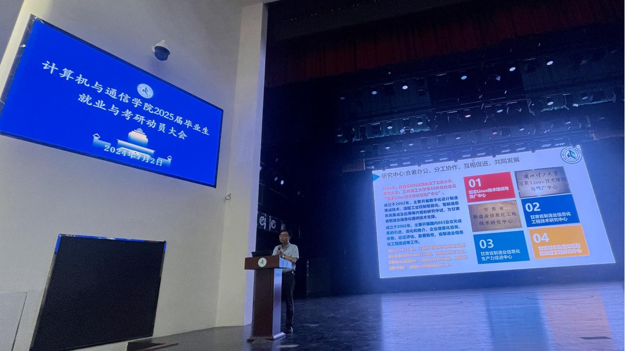 为帮助学院2025届本科毕业生了解当前就业市场形势,树立正确就业观念和制定科学求职目标。同时帮助考研学生更好把握当前考研形势,科学择校择专业,增强考研动力和信心。7月2日下午15:00,计通学院在彭家坪大学生活动中心红柳剧场召开2025届本科毕业生就业和考研动员大会。校学生就业指导服务中心陈育苗副主任、计通学院冯涛院长、兰州市七里河区人民武装部李建副部长、计通学院李晓旭副院长、通信工程系贾科军副主任以及学院部分辅导员和2025届全体本科毕业生参加,大会由我院党委副书记来明展主持。