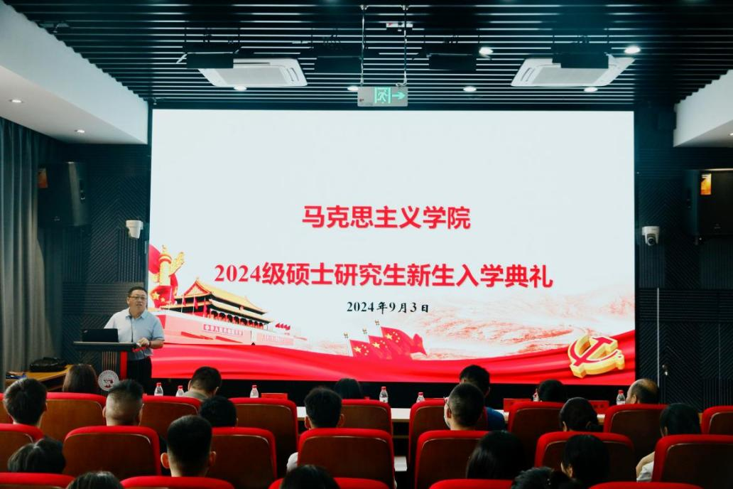 秋风送爽桂飘香,学子扬帆竞远航。9月3日上午,马克思主义学院2024级硕士研究生新生入学典礼在大学生活动中心思政课沉浸式体验中心顺利举行。学院党委书记王玲、院长饶旭鹏、党委副书记陈晓亮、副院长朱长兵、副院长马云霞,专业负责人刘海霞教授、张铁军教授、杨亚雄副教授,在校学生代表及2024级全体研究生参加典礼。入学典礼由学院党委副书记陈晓亮主持。