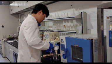 图为志愿者对中药产物进行萃取抽滤