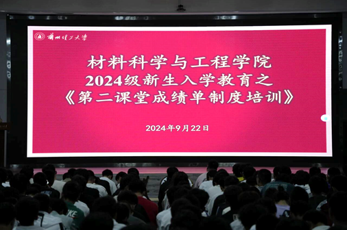 为了帮助2024级新生尽快适应大学生活,进一步提升他们对“第二课堂成绩单”制度的认知与参与度,锻炼个人综合素质。2024年9月22日晚19:30,材料学院在兰工坪校区大学生活动中心四楼举办了“第二课堂成绩单”制度培训会,学院青年素质拓展部陈菲同学主讲,辅导员汪环及2024级全体新生参加。