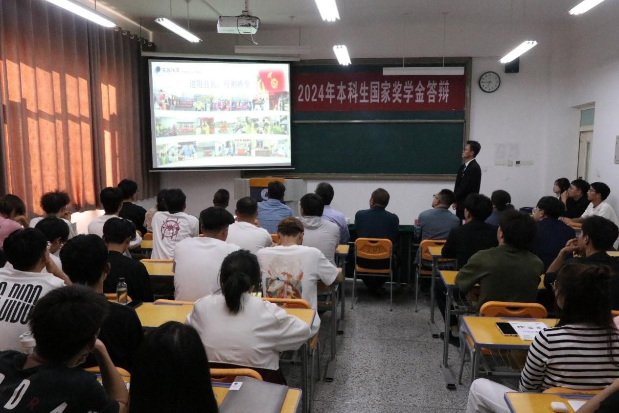 9月23日下午,学院在致远楼512教室举行了2024年本科生国家奖学金评选答辩会。2021级新能源科学与工程专业郭维东同学脱颖而出,获得学院的推荐资格。