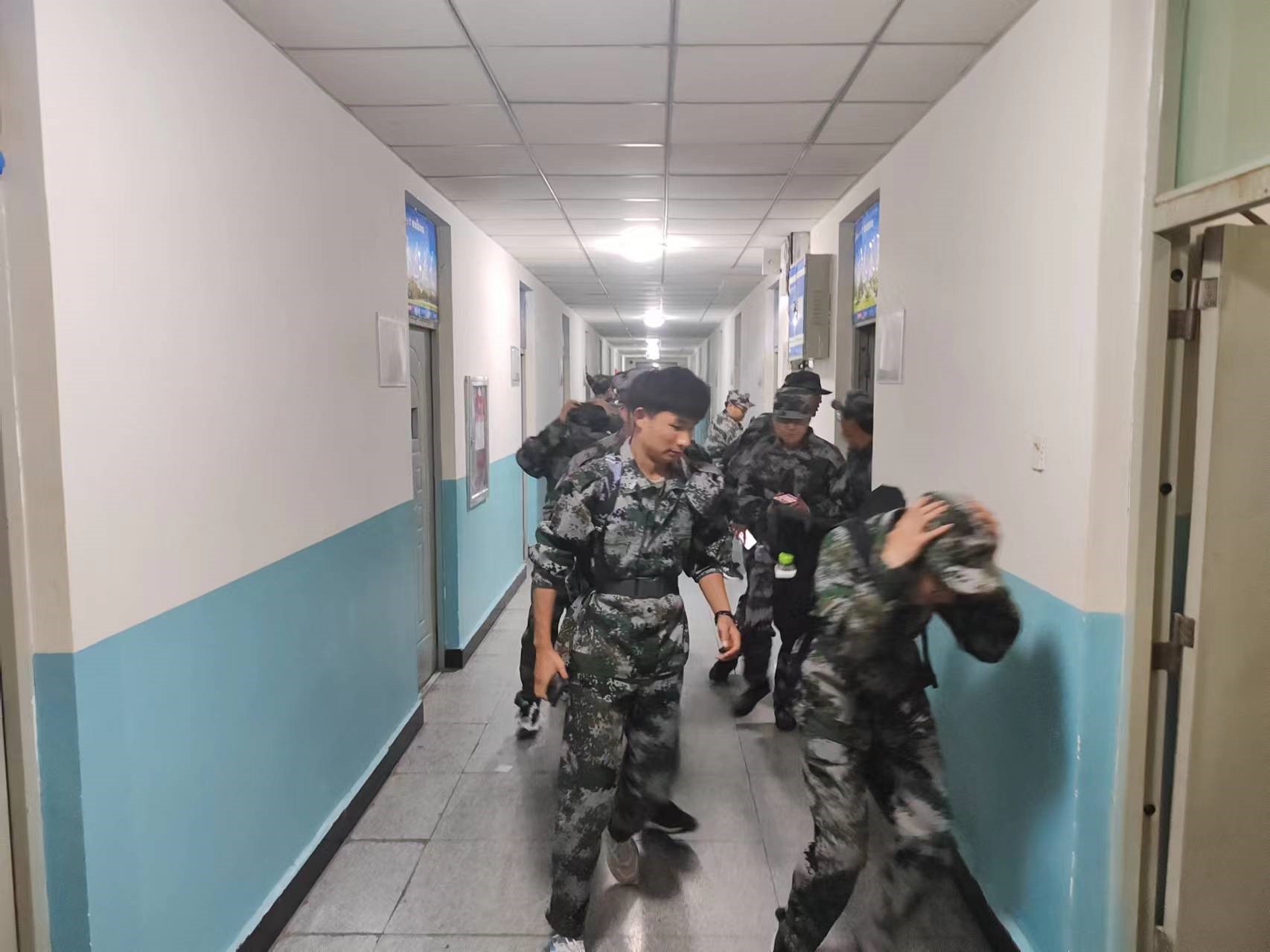 9月23日夜晚,新能源学院2024级新生闻令而动,在军训教官们的带领下开展了公寓应急疏散演练和军训夜间拉练活动。