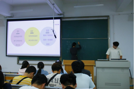 会上,理学院团委学生会各部门负责人依次上台进行部门介绍。通过PPT展示、视频资料和实例分享,展示部门特色与团队风采,帮助新生们对团委学生会的各项工作有更加直观和深入的认识。讲解结束,各负责人耐心为同学们答疑解惑,现场气氛活跃,新生们纷纷表达了对加入团委学生会的期待。
