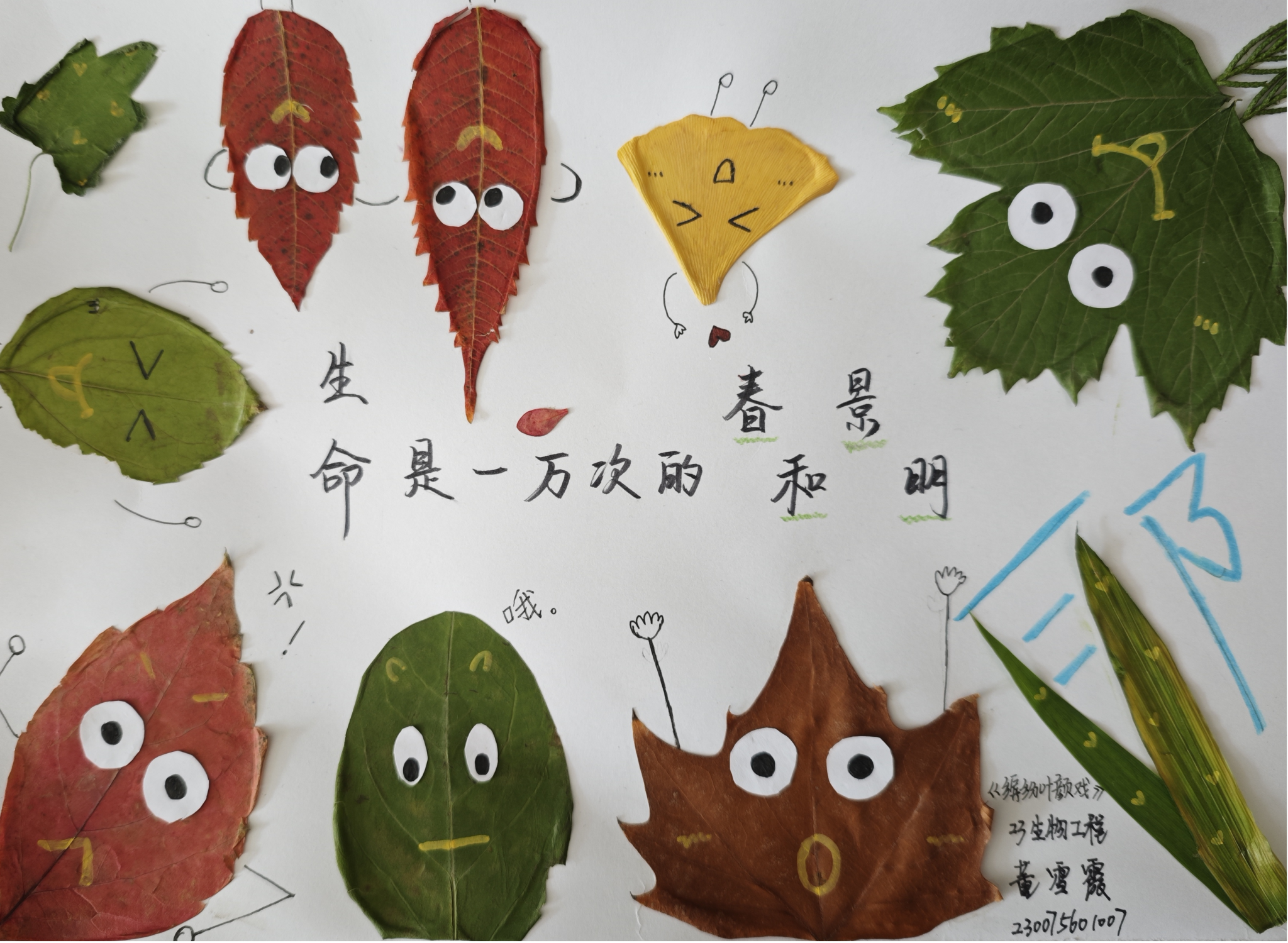 生命学院10月21日-10月27日期间,以“叶络寄语、健康相伴”为主题,开展树叶粘贴画比赛与作品展。本次活动围绕合理膳食、健康生活进行,吸引了众多同学的积极参与。