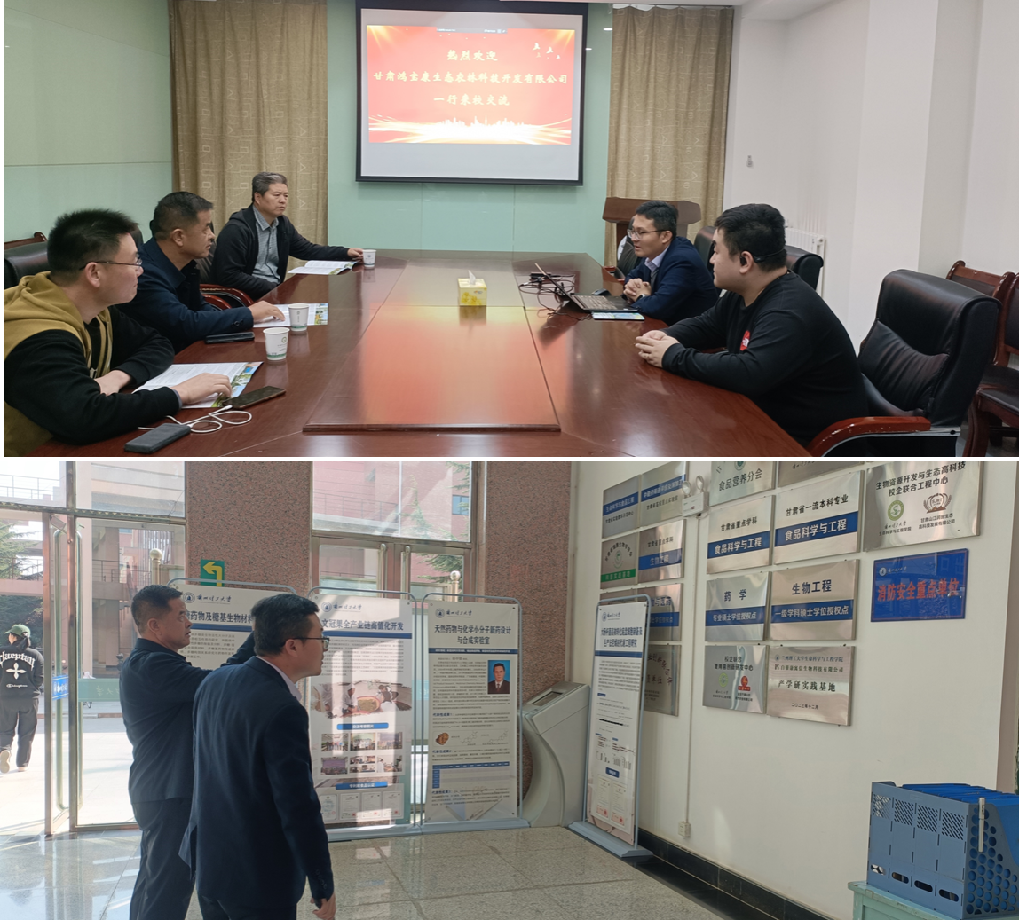 10月17日,张掖市甘肃鸿宝康生态农林科技开发有限公司(简称鸿宝康农林公司)一行3人到访生命科学与工程学院。双方在学院会议室开展座谈交流,学院副院长任海伟教授、食品科学与工程系田辉副教授、石任杰博士参会。