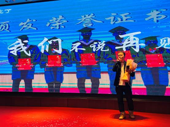 灯光亮起,伴随着清脆的节拍,在充满激情的开场热舞中晚会拉开帷幕。MBA毕业生张鑫、陈敬旭、冯丹、王乐担任晚会主持人。同学们自编自导自演,给大家带来一次视觉盛宴。“莫愁前路无知己,天下谁人不识君”。2022级1、2班毕业生全体先后登台,带来手势舞《太阳下有月光》、合唱《再见》,3班同学带来诗朗诵。刘禹等同学带来的三句半表演《我和兰理工》、丁成斌同学一曲陕北民歌独唱《山那边》、冯军伟等同学带来的豫剧选段《花木兰》、口技表演等赢得了台下观众的阵阵掌声。杨柳用一曲《凤凰花开的路口》歌曲,向毕业生们诉说心声,蕴含了师生分别的不舍,也传递了对学子的美好祝愿。