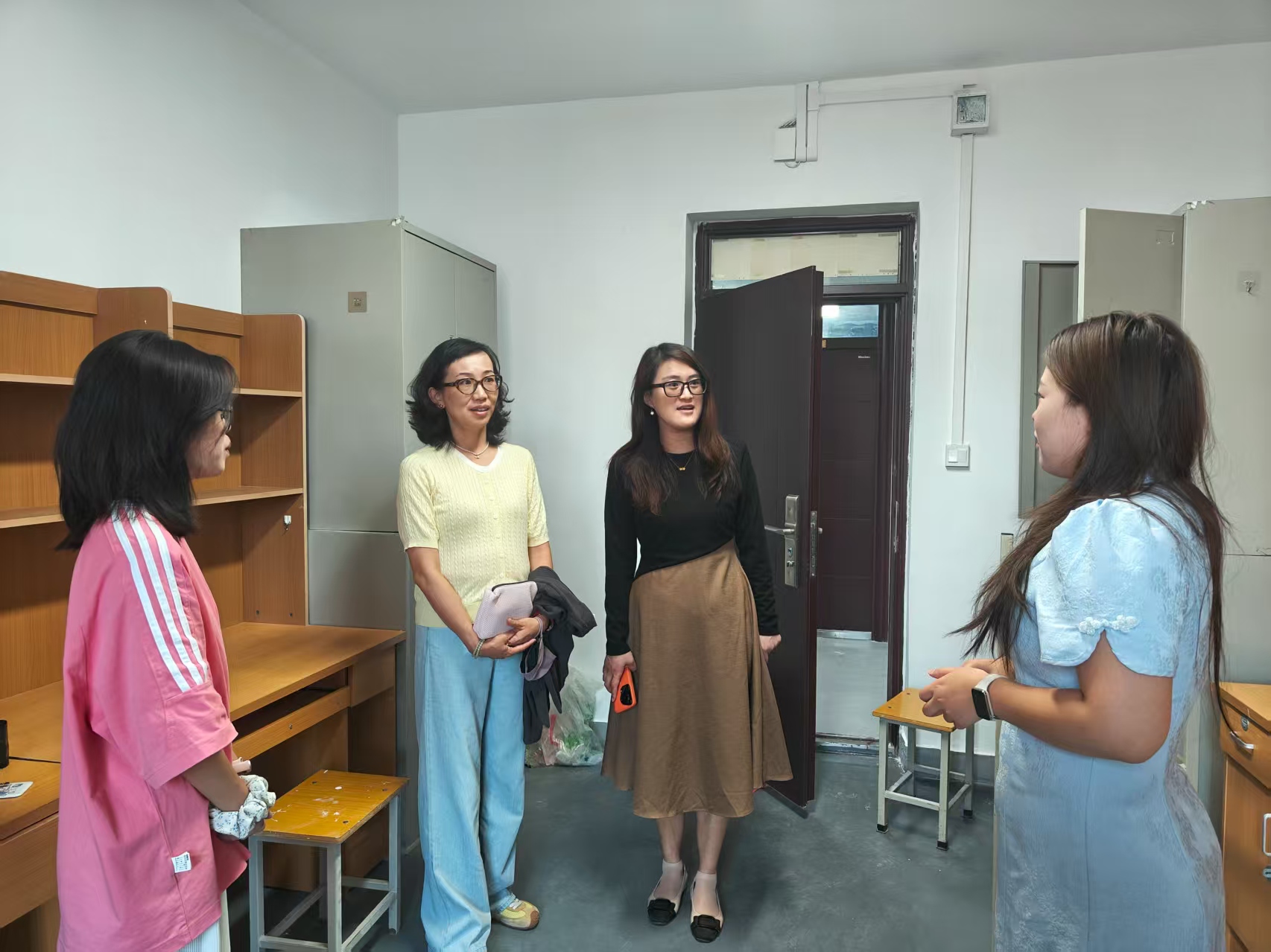 学院领导、班主任、辅导员分组对每间新生宿舍进行了走访慰问。学院领导对新生与家长表示欢迎,并同学生和家长进行亲切交谈,对饮食习惯、气候环境、学习规划、舍友关系、宿舍分配情况、安全隐患等进行详细了解,耐心细致回答家长和学生问题。同时,叮嘱学生树立安全意识,注重宿舍用电、人身财产安全、饮食安全等,勉励新生快速适应大学生活,加强自律,养成良好学习生活习惯,营造积极向上的宿舍文化。