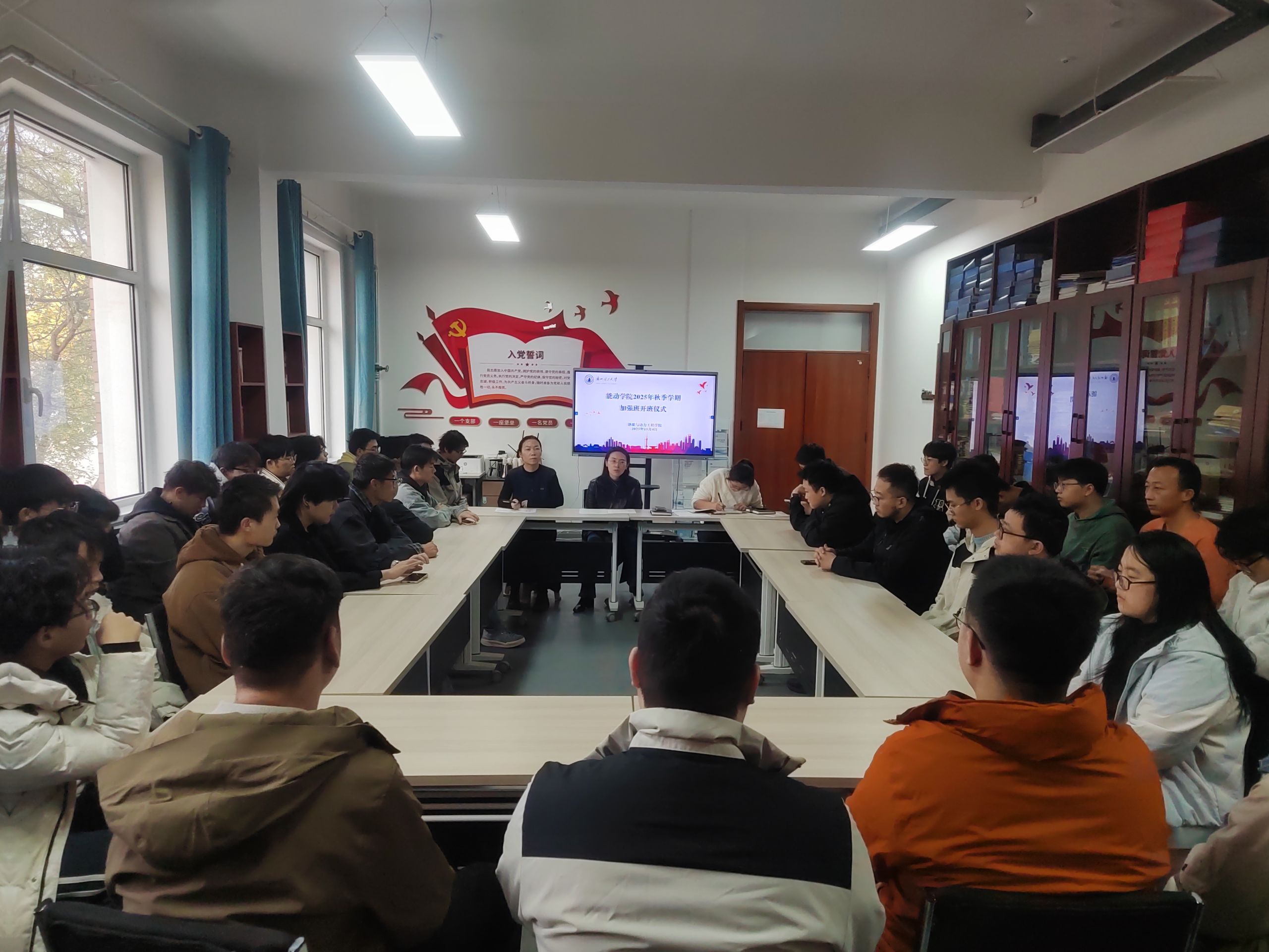 为培育卓越学风,积极推进学院学风建设,11月4日,能动学院2025年秋季学期学风建设加强班开班仪式在兰工坪校区流体南楼党员之家举行,学院党委副书记陈冲、年级辅导员及67名加强班学生参加。