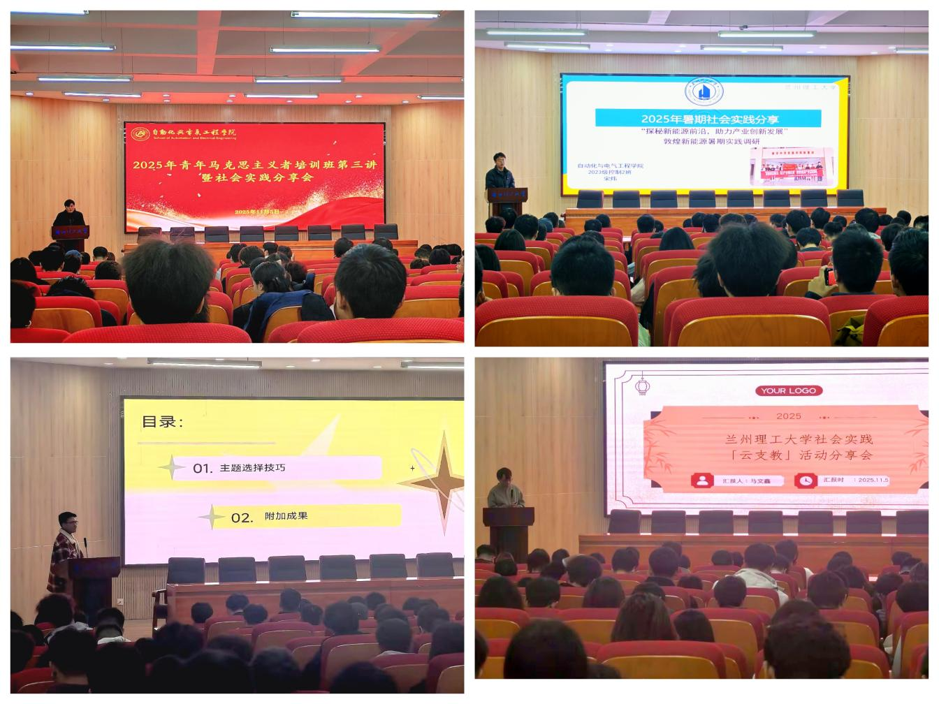 为全面总结2025年暑期“三下乡”社会实践成果,扎实推进青年马克思主义者培养工程,11月5日,自动化与电气工程学院在舒卷楼D401教室举办青年马克思主义者培训班第三讲暨社会实践分享会。学院辅导员李明、赵雅婷,“三下乡”重点实践团队成员、青马工程全体学员及2025级新生代表共同参与。