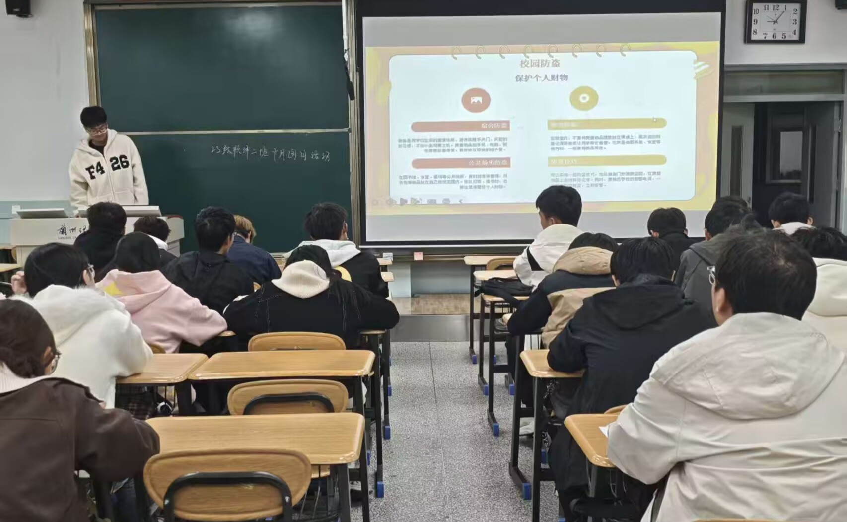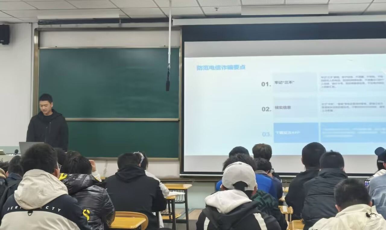 主题班会阶段,各班安全委员将培训所学知识运用于实践,认真准备班会材料,设计多种形式的互动环节,通过案例分析、小组讨论和情景模拟等方式,向班级同学宣传宿舍用电规范、防范电信网络诈骗等实用的安全知识。
