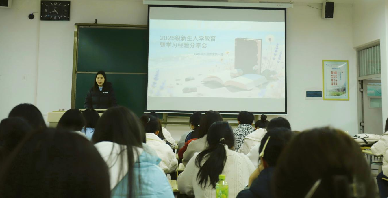 11月12日下午,文学院举办“2025级新生入学教育暨学习经验分享会”。本次分享会邀请了三位优秀高年级学生代表进行学习经验专题分享,旨在搭建新生与高年级优秀学子的交流互动平台,引导同学们树立学习目标、明确成长方向。