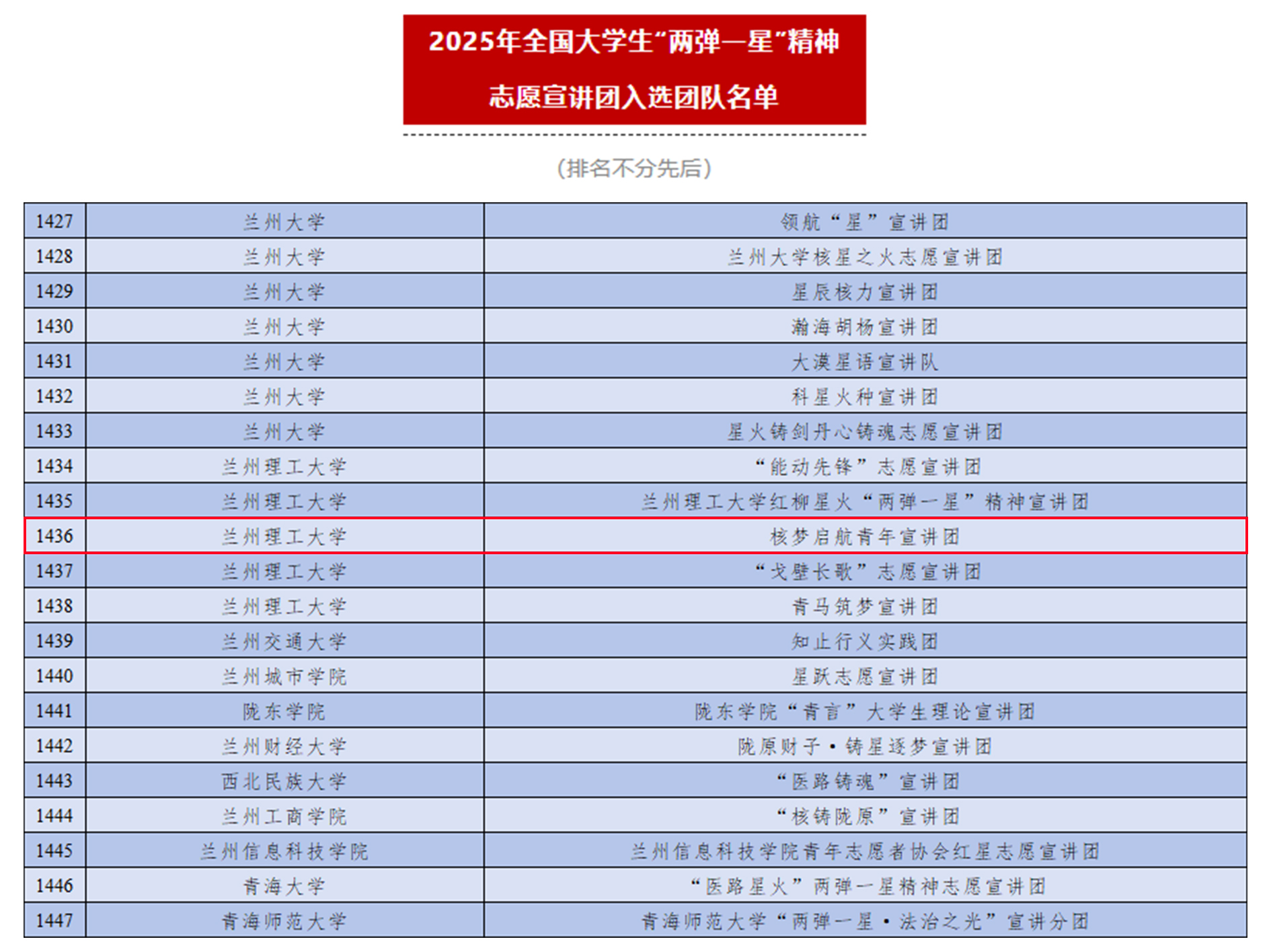 核梦启航青年宣讲团由兰州理工大学石油化工学院20名优秀红柳青年组成,涵盖油气储运工程、化学工程与工艺、过程装备与控制工程、安全工程、应用化学等核心专业。团队拥有8名中共党员和9名共青团员,这些成员具有突出的政治素养、扎实的实践能力扎实、宣讲经验,是一支先锋队伍。今年6月,团中央青年志愿者行动指导中心与中国核工业集团联合发起遴选全国大学生“两弹一星”精神志愿宣讲团,团队顺利入选。