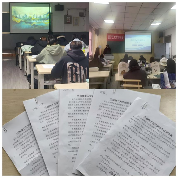 为进一步加强学院考风学风建设,11月16日,建筑与艺术设计学院各班级召开“诚信考试和选课规范”主题班会,以强化学生考场规则意识,同时为期末备考及后续选课、学业规划进行规范指导。全体同学在班会现场共同签署《兰州理工大学诚信考试承诺书》。