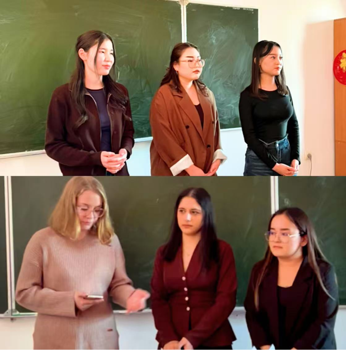 11月20日,一场以中哈先贤——孔子与阿拜·库南巴耶夫为主题的经典朗诵活动在哈萨克斯坦杜拉蒂塔拉兹国立大学举办。本次活动由文学院外派教师罗娟娟与实习教师(2024级国际中文教育硕士生海晓、王小丽)共同策划组织,世界语言系汉语班全体学生参与,该系汉语班教师和主要领导共同出席。