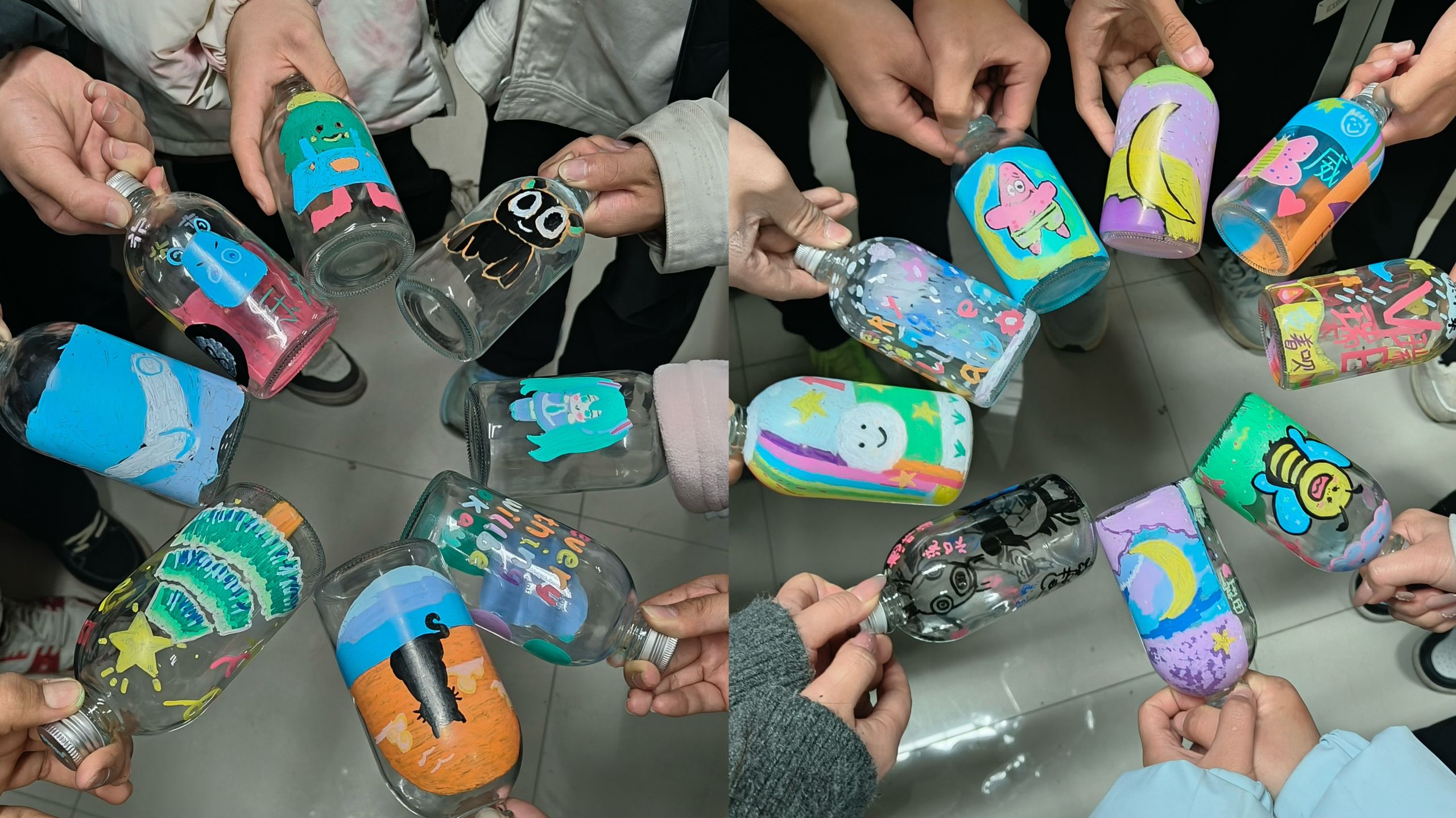 参与同学表示:“在专注绘画的过程中,我感受到内心的平静。看着原本透明的瓶子被自己的情绪色彩一点点填满,仿佛那些纷繁的思绪也得到了安放。这个作品将成为我专属的‘能量补给站’。”