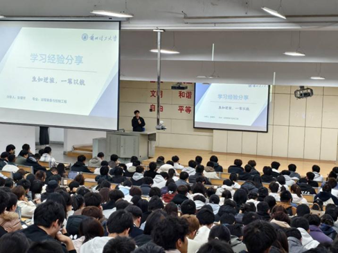 来自2024级过控卓越班的彭健宇,是国家奖学金的获得者。他以平均分93.5分的优异成绩,展现了其在学业上的绝对实力与精益求精的钻研精神。他的分享聚焦如何夯实基础、高效学习以及平衡课程与课外活动,为新生们提供一套可借鉴的“学霸”养成方法论。