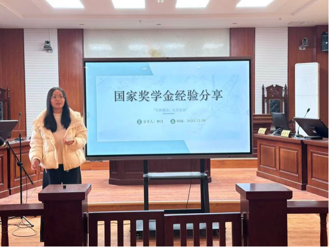 为搭建学术交流平台,传承优良治学传统,法学院于12月8日举办了2025年研究生学术论坛暨本科生考研动员大会。2024-2025学年研究生国家奖学金获得者做国奖经验分享、2025级硕士研究生与2022级本科生积极参加。