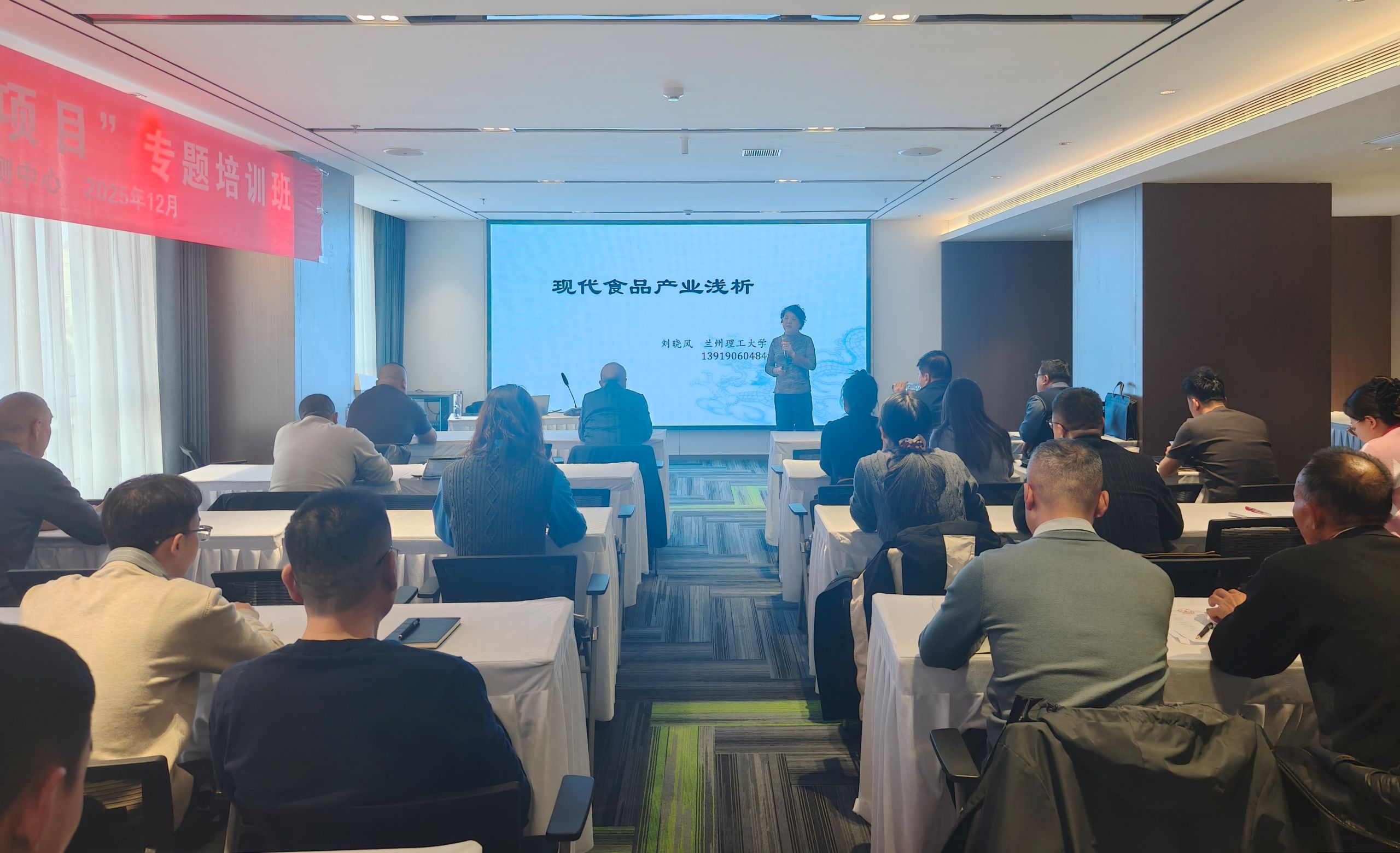 2025年“甘肃省重点人才项目”人才培训工作于12月8日至12日在庆阳市举行。本次培训由陇东学院农业与生物工程学院承办,庆阳市科技局、庆阳市食品检验检测中心等单位协办。培训采取理论教学与现场实践相结合的模式,吸引了来自庆阳市及陇东南地区从事药食兼用资源开发、健康食品产业化相关的企事业单位技术骨干与管理人员共40余人参加。