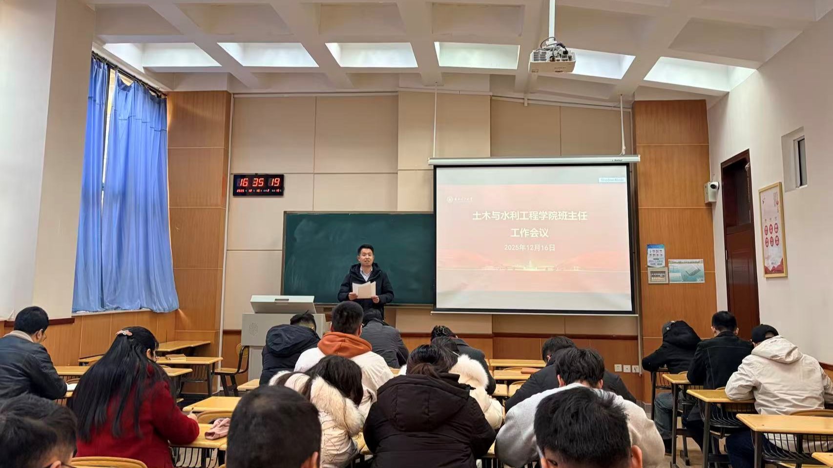 为筑牢校园安全防线,切实提升育人实效,12月16日,土木与水利工程学院在兰工坪校区尚学楼107室召开全体班主任工作会议。学院党委书记赵炜、学院党委副书记王宝成参会。