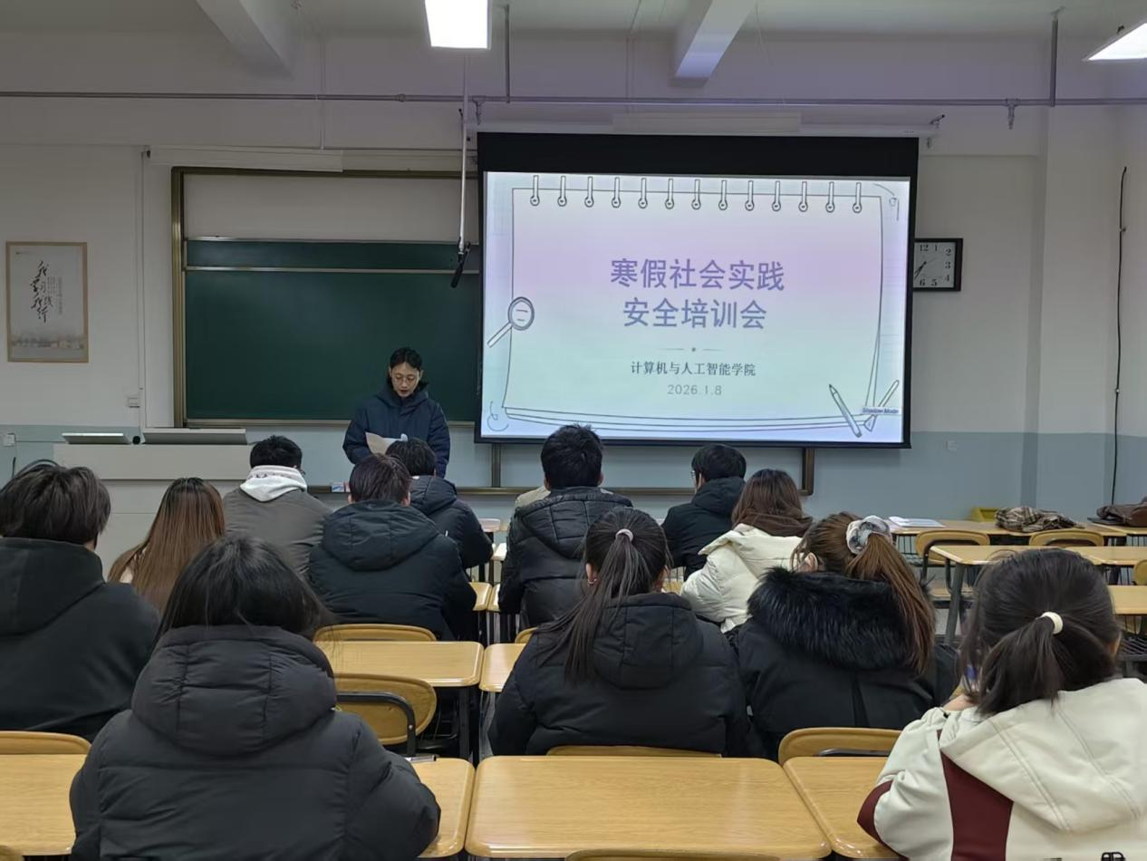 为切实提升学生寒假社会实践的安全意识与防范能力,确保实践过程平安顺利,1月8日晚,计智学院在敦雅楼召开寒假社会实践安全培训会。学院团委书记、2025级辅导员以及各实践团队负责人、部分报名学生参加培训。