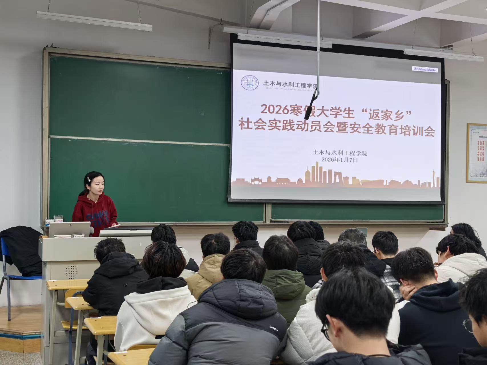 为切实保障学生寒假“返家乡”社会实践安全有序开展,1月7日,土木与水利工程学院召开2026年寒假“返家乡”社会实践动员会暨安全教育培训。各实践队学生代表共计100余人参加会议。会议由金悦老师主持。