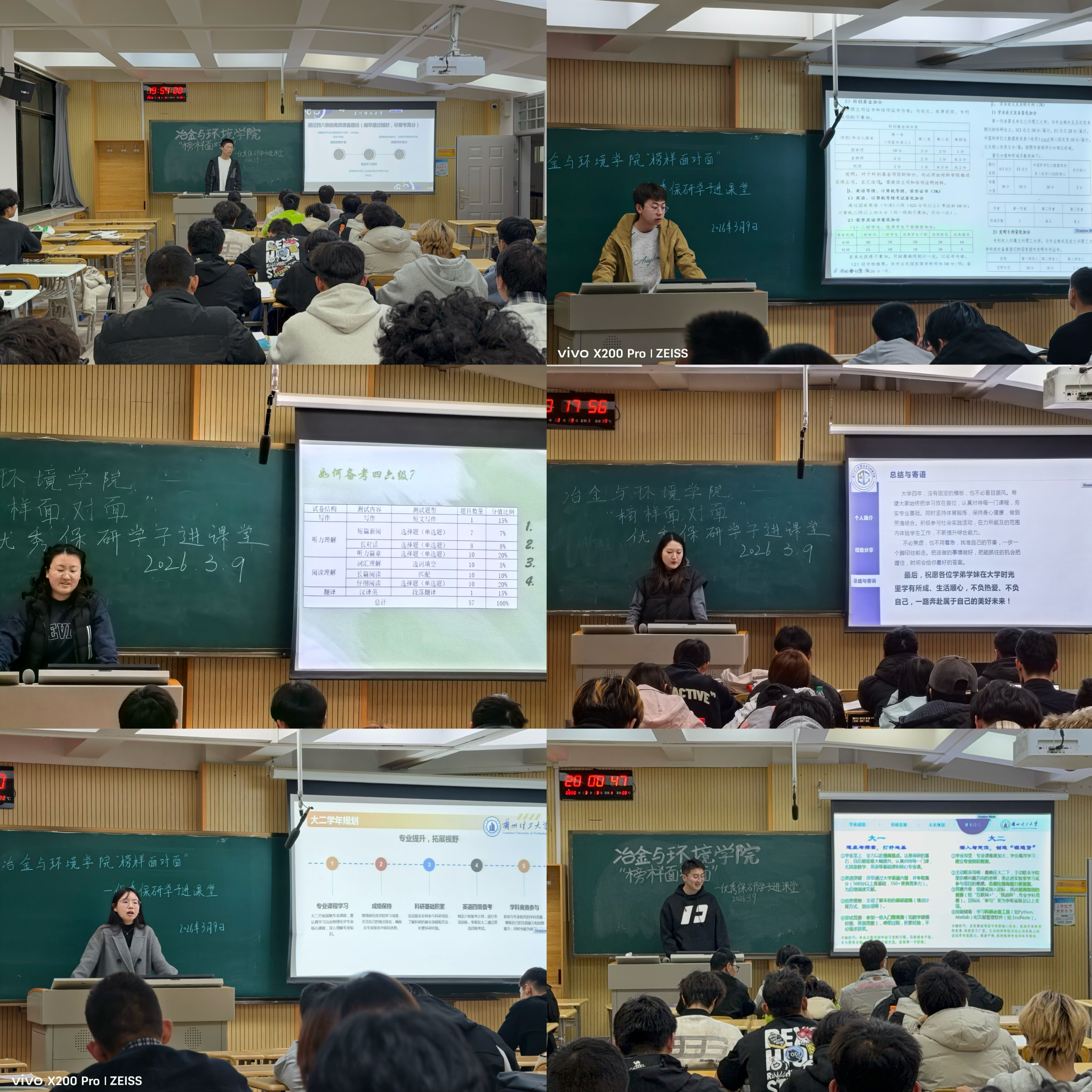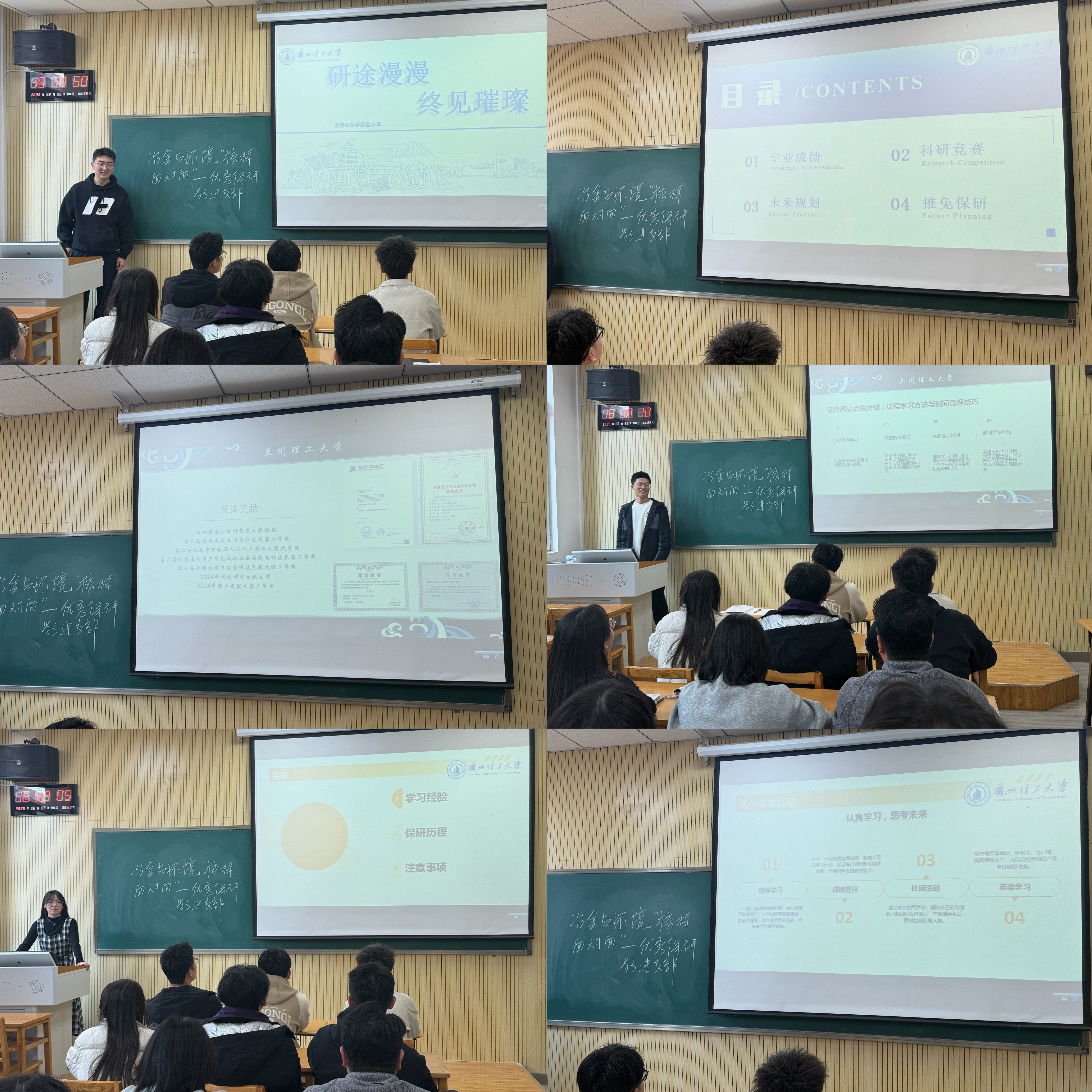 宣讲过程中,优秀保研学子结合自身成长经历,从学业成绩提升、科研实践积累、竞赛经验总结、保研流程梳理等方面倾囊相授。学子们紧扣冶金工程、环境科学与工程等专业特色,强调专业核心课程学习的重要性,分享平衡课内学习与科研竞赛的实用方法,详解夏令营、预推免各关键节点的准备技巧,提醒同学们提前规划、精准发力。同时,还结合自身从基础薄弱到成功保研的逆袭经历,分享心态调整方法,鼓励低年级同学正视迷茫、脚踏实地,主动挖掘自身潜力,在勤学善思中锤炼本领。宣讲活动走进课堂、深入支部,学弟学妹们积极提问,学长学姐们耐心解答科研入门、院校选择等疑问,现场交流氛围浓厚。