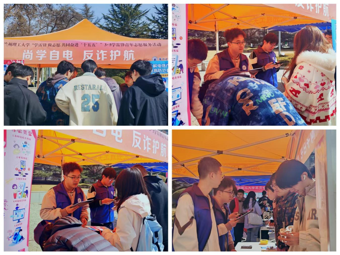 3月5日学雷锋纪念日,学院志愿者在兰工坪校区开展反诈知识宣传活动。志愿者们通过趣味问答、情景模拟等互动形式,向师生普及电信网络诈骗的常见套路与防范技巧,现场气氛热烈,师生参与踊跃。“原来诈骗手段这么多,以后一定要多加小心!”一位参与活动的同学感慨道。活动有效提升了师生的防骗意识,为构建平安校园贡献了力量。