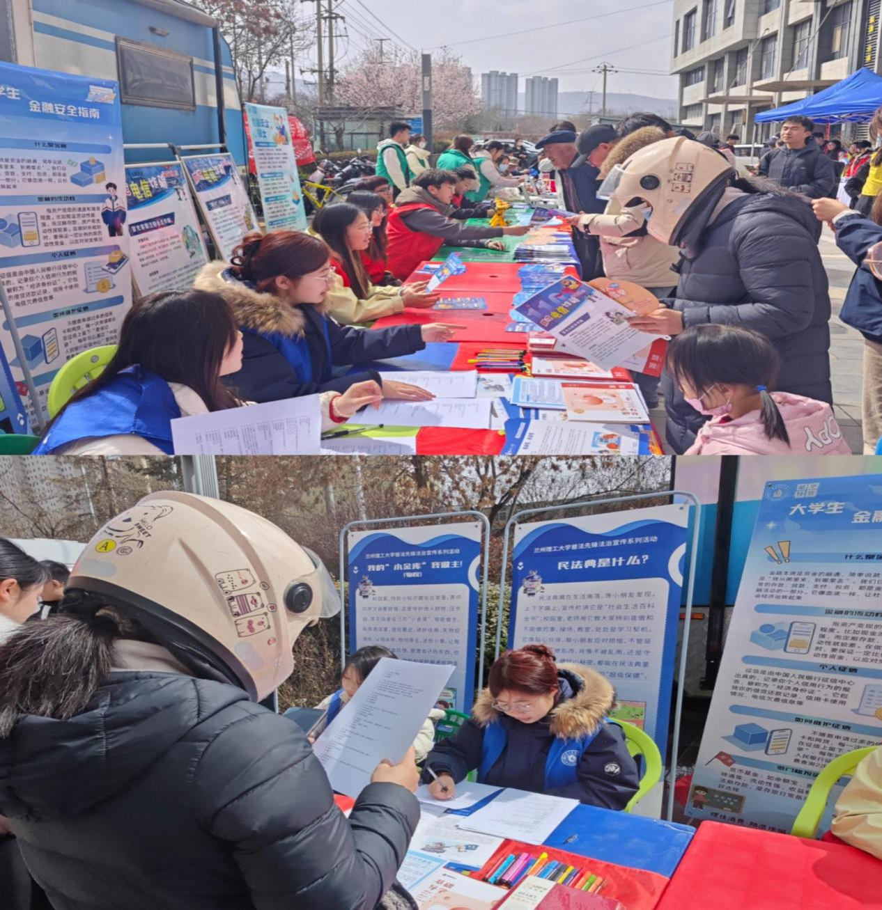 在基层普法宣传方面,法学院青年志愿者协会组织学生走进社区,开展普法志愿服务专项行动。志愿者们结合基层群众法律需求,精心准备了《中华人民共和国民法典》《中华人民共和国反电信网络诈骗法》等宣传资料,围绕高频法律问题进行解读。在活动现场,志愿者们设立法律咨询服务台,耐心解答群众法律疑问。