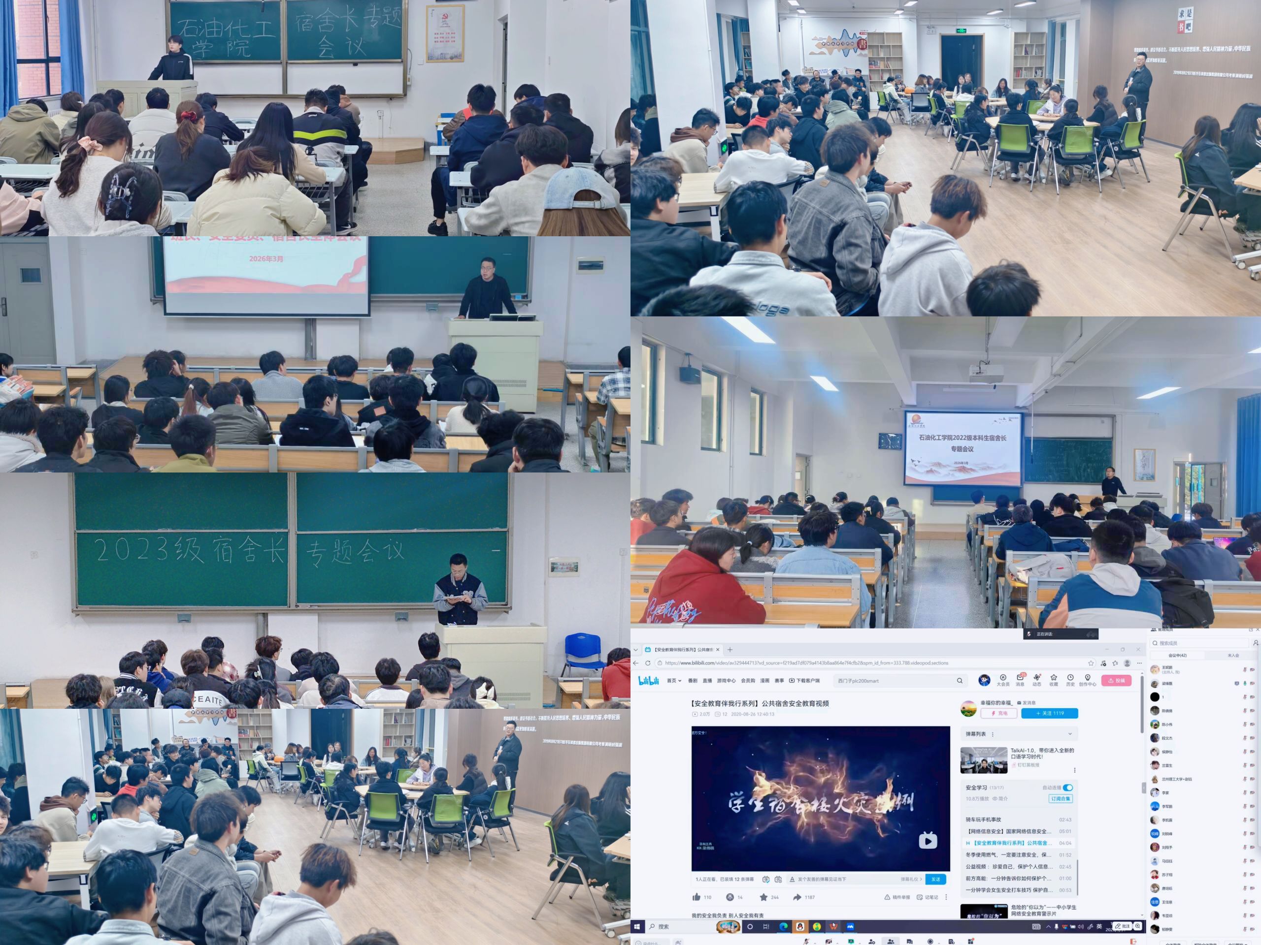 为响应学校工作号召,切实提升宿舍长队伍工作效能,石油化工学院于2026年3月25日至4月2日,通过线上线下相结合的方式,分年级组织召开了全体学生宿舍长专题会议。会议在各年级分会场依次进行,学院党委副书记、辅导员及全体学生宿舍长参加。会议旨在进一步夯实学生社区管理基础,强化宿舍长在安全稳定、信息沟通与文明建设中的关键作用。