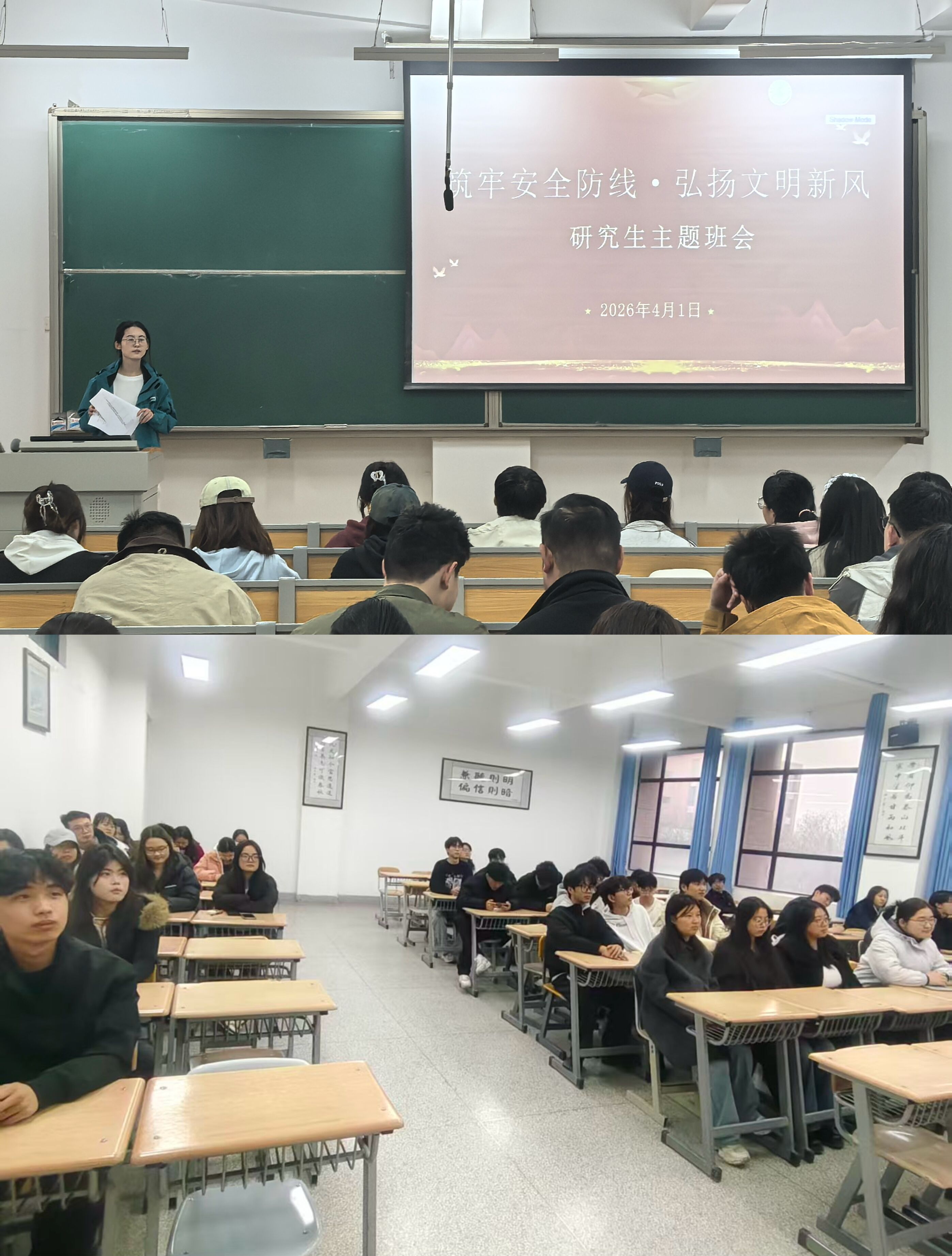 班会期间,各班通过案例分享、互动问答等轻松活泼的形式,充分调动学生的参与积极性,让安全知识真正入脑入心。班会结束后,学院同步开展了宿舍安全隐患全覆盖排查,重点检查违章电器、违禁物品等风险点,并及时整改落实。辅导员逐一与假期留校学生进行沟通交流,并通过多种方式精准掌握全体学生的假期去向与思想动态,严格落实假期值班值守与请销假管理制度,形成校园安全管理的完整闭环。