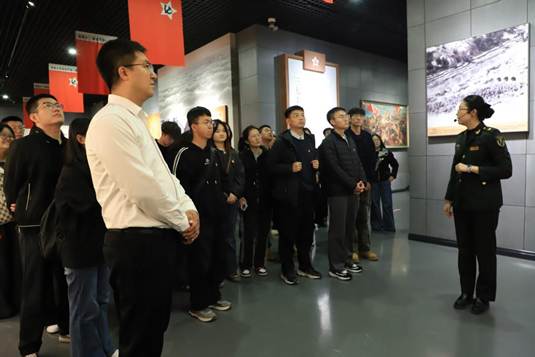 在讲解员引导下,师生参观了红军会师纪念馆,通过历史文物、文献资料与复原场景,沉浸式追忆红军长征的艰苦卓绝,深刻体悟不怕牺牲、百折不挠的长征精神。参观结束后,贾永胜老师结合现场展陈作专题讲解,深入阐释了长征精神的时代内涵与当代价值。