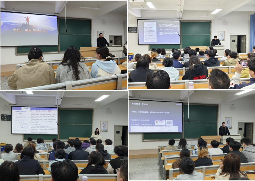 整场分享会氛围热烈、内容翔实,四位大四学生用真诚的分享、实用的干货,为正处于迷茫期的2023级同学拨开了未来发展的迷雾。同学们认真聆听、积极记录,不时点头回应,会后纷纷表示,此次分享会收获颇丰,不仅对保研、就业、考研有了更清晰、更深入的认识,也进一步明确了自身的发展方向,为后续的学习和规划奠定了坚实基础。最后,杨伟霞、田亚琴两位青年博士对本次分享会进行总结,鼓励同学们珍惜大学时光,尽快明确自身发展目标,合理规划时间、主动投入学习,不负韶华、不负自己,以坚定的信念和扎实的行动,奔赴属于自己的精彩未来。(图/文:田亚琴、钟尚财、杜芙蓉;审核:常小军)