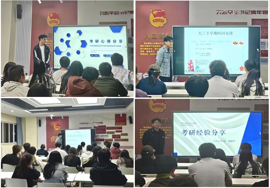 为进一步加强学风建设,充分发挥优秀学子的朋辈示范引领作用,帮助低年级同学明确考研目标、掌握备考方法,4月14日,土木与水利工程学院举办“学风领航 研途筑梦——考研经验分享会”。