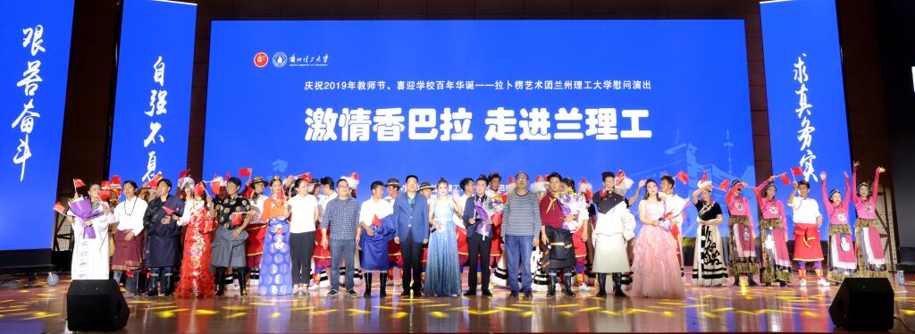 为庆祝第三十五个教师节,喜迎学校百年华诞,9月9日晚,校工会邀请拉卜楞艺术团在兰工坪校区体育馆举行了以“激情香巴拉,走进兰理工”为主题的教师节慰问演出,为全校教职工带来了一场新颖别致、流光溢彩的视听盛宴,为教师节营造出了欢乐祥和的氛围。在家校领导、省教科文卫工会有关领导和全校师生约2300余人观看了演出。